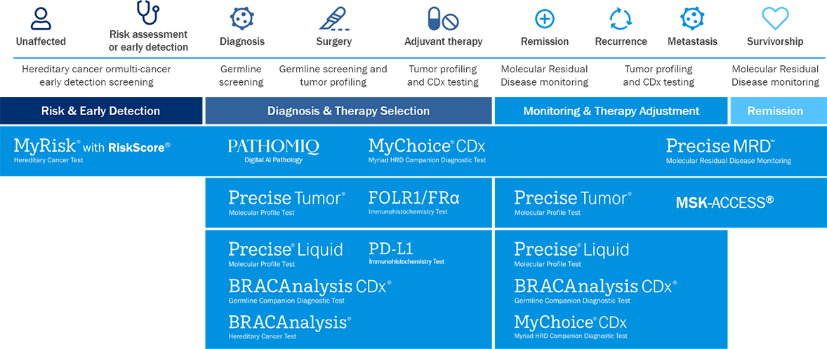 Our diagnostic strategies are supported by a comprehensive portfolio of genomic tests and platforms deployed across the oncology lifecycle, from early risk assessment to monitoring and recurrence.
